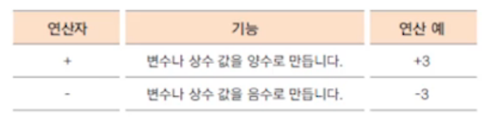 - 양수와 음수를 표현하거나 값의 부호를 변경