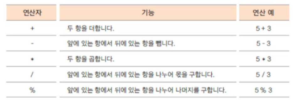 - 연산자(operator): 항을 이용하여 연산하는 기호