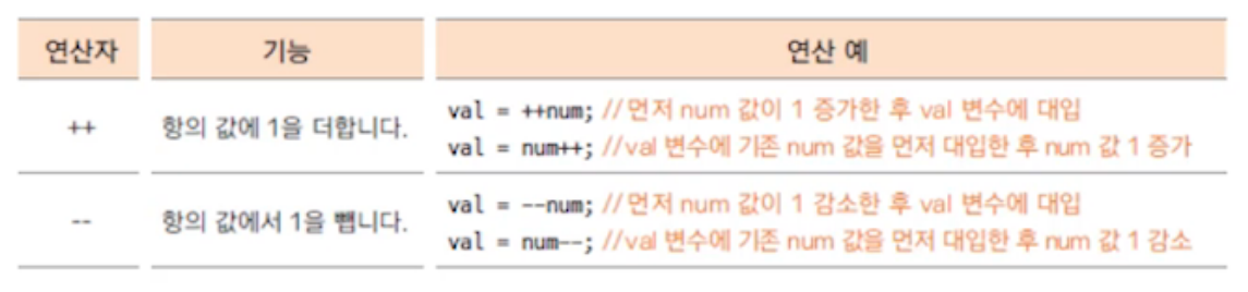 - 1만큼 더하거나 1만큼 뺄 때 사용하는 연산자